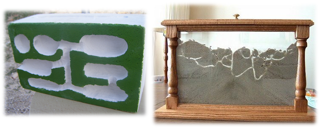A esquerda: Blocos com câmaras esculpidas; a direita: tipo sandwich