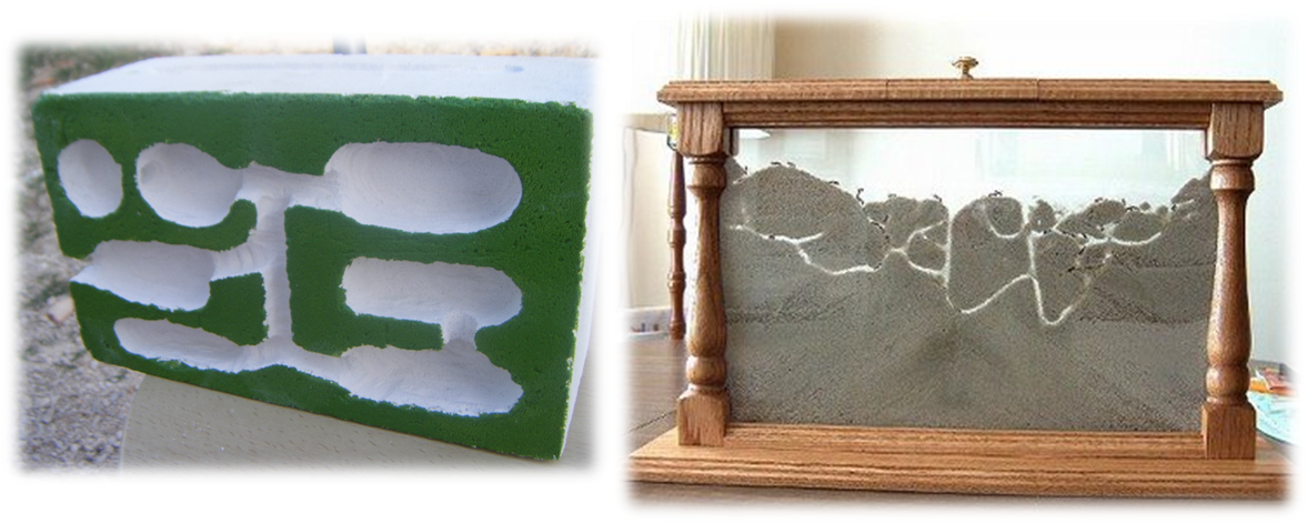 A esquerda: Blocos com câmaras esculpidas; a direita: tipo sandwich