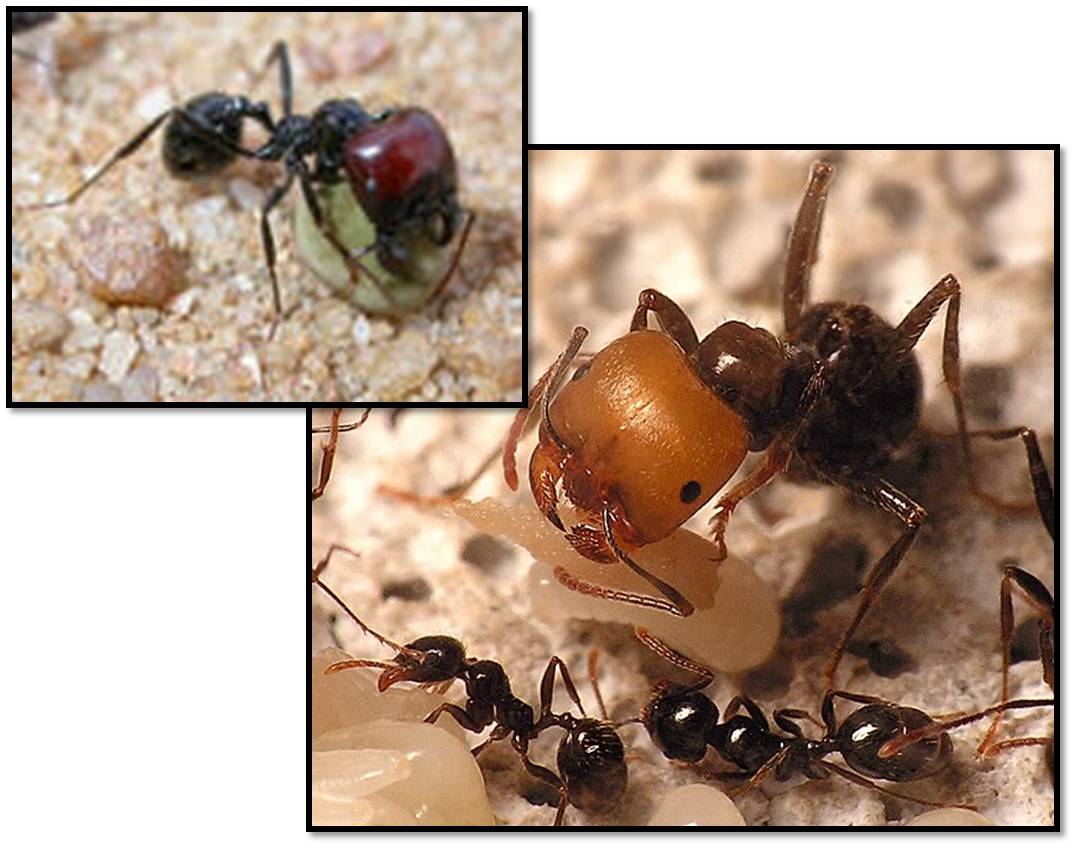 Particularidades: estas formigas são conhecidas por "formigas do pão", pois tem grandes grupos de formigas obreiras especificas para "mastigação" das sementes de forma a produzirem o alimento para a colónia, como se fossem fábricas de alimento.